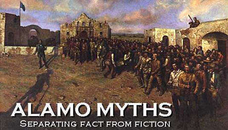 MYTH: That Texans were the good guys and Mexicans the bad guysFACT: The Mexicans were fighting to defend their country and to hold it intact. While Texans were fighting for certain freedoms and a more liberal judicial system. One of the freedoms they were seeking was the right to own slaves. MYTH: There were no survivors of the Alamo.FACT: As many as 17 people who did not take part in the fighting survived the battle, including Susannah Dickenson, her daughter, a black slave and about 14 pro-Texan Hispanics. Other accounts of survivors among the fighting men also have surfaced although these are in dispute. MYTH: Davy Crockett died fighting, swinging his rifle, “Old Betsy,” with a heap of dead Mexican soldiers at his feet.FACT: There are varying accounts of what happened, including several that say he was captured along with six other Alamo defenders and executed. MYTH: That William Travis drew a line across the courtyard and told those willing to stay to step across the line. Jim Bowie, taken ill, asked that his cot be carried across the line to signal his willingness to stay.FACT: This story didn’t surface until 1873, when William Zuber claimed to have heard it from Louis Rose, the one who is supposed to have refused to cross the line. But there is no other record to support the story. MYTH: The Texas Lone Star flag flew over the Alamo during the 13-day siege.FACT: It did not, although debate continues over which flag did fly over the mission-fortress. Earlier accounts had the defenders flying the flag of the Louisiana Greys while others claimed it was a Mexican flag bearing the date 1824, the year Mexico passed a liberal constitution favorable to Texans. Most historians now believe the most likely flag used at the Alamo was the tricolor Tejas y Coahuila flag. MYTH: The ashes of the Alamo defenders reside in a marble coffin in the San Fernando Cathedral.FACT: When Juan N. Seguin returned to San Antonio in February of 1837, he collected what ashes remained into a single coffin. After a brief religious service at the San Fernando Cathedral, the ashes were taken back and interred on the spot where they were found. The stones that marked the spot are gone and the exact location of the grave is now lost. Source: Dallas Times Herald, Monday, April 18, 1988Illustration “Decision at the Alamo” used with permission. copyright by Kenneth R. Turner.